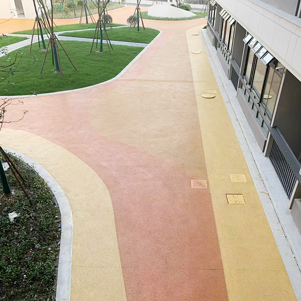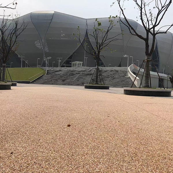 不專的業施工隊伍,施工次序錯亂,沒有專業施工設備及養護,經常會產生路面脫石子(起沙)情況。 廣霸透水混凝土,擁有自主研發的膠結料,同時多年的施工經驗總結了科學合理的配比方案(骨料、水泥、膠結料、顏料、水等),確保了施工路面具有良好的美觀性、抗壓性、透水性效果。